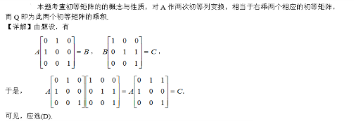 设A是3阶方阵,将A的第1列与第2列交换得B,再把B的第2列加到第3列得C, 则满足AQ=C的可逆矩阵Q为