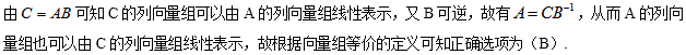 B矩阵C的列向量组与矩阵A的列向量组等价