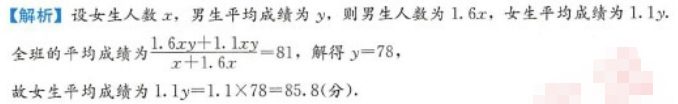 某班同学在一次英语测验中,平均成绩为81分,其中男生人数比女生人数多60%,而女生平均成绩比男生高10%,那么女生平均成绩为( )