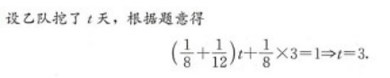 甲、乙两队开挖一条水渠,甲队单独挖要8天完成,乙队单独挖要12天完成,现在两队同时挖了几天后,乙队调走,余下的甲队在3天内完成。乙队挖了( )天