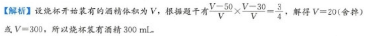 某烧杯装有一定体积的纯酒精,倒出50mL之后,加入纯水补充溶液至原体积,再倒出30mL,再加入纯水补充溶液至原体积,此时溶液的浓度为75%,则烧杯开始装有的纯酒精有( )mL