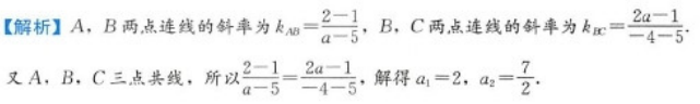 已知三点A(a,2),B(5,1),C(-4,2a)在同一直线上,则a的值为( )