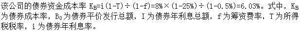 某公司发行债券筹资,票面总金额为5000万元,偿还期为5年,每年付息一次,票面利率为8%,发行费用率为0.5%,公司所得税率为25%,则债券资金成本率是( )。