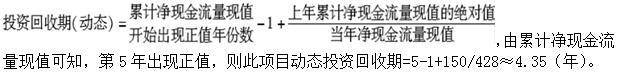 某一运输项目第4年累计净现金流量现值为-150万元,而第5年为210万元,当年折现后的现金流量428万元。则此项目动态投资回收期为( )年。